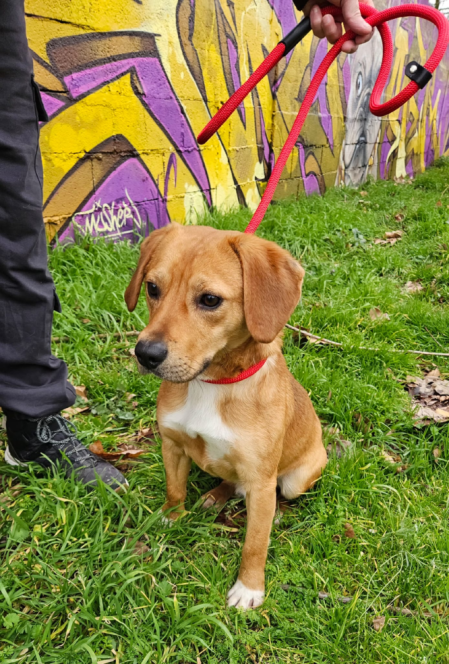 Comme beaucoup de jeunes chiens énergiques, Alpha a encore besoin de travailler la marche en laisse, car il tire un peu. Avec de la patience, des sorties régulières et une éducation positive, il progressera très vite.