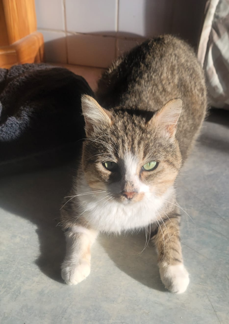 Gentille chatte timide mais douce. Il lui faudra un foyer sans chiens.