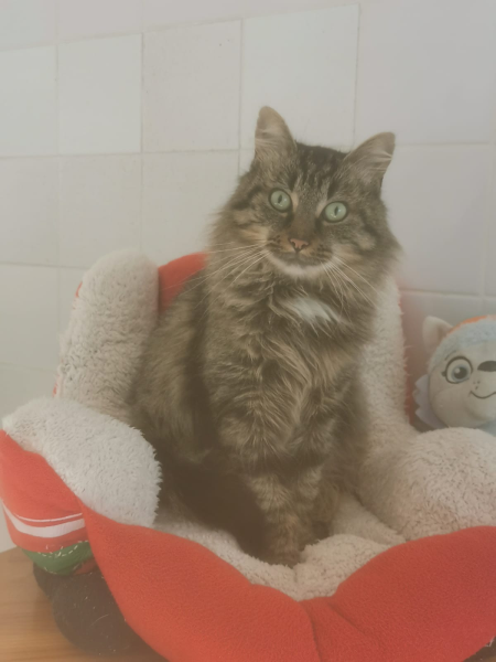 Recueilli suite au décès de sa propriétaire. Il vivait avec d'autres chats, et était habitué aux enfants.