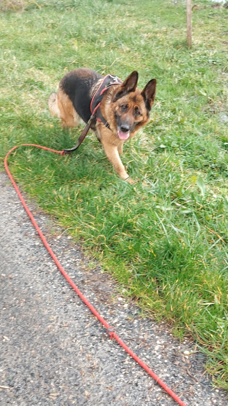 Toutefois son manque de sociabilisation se traduit par une réactivité à ses congénéres lors de ballades, ainsi qu'un tempérament beaucoup trop gardien de sa maison. Il sera nécéssaire de continuer de travailler ces points en continuité de ce qui est amorcé actuellement au refuge.